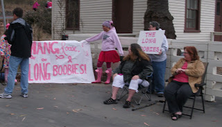 The community support is amazing. The Tissue Lady was out in full force, all 3 days, several locations each day. It sounds weird but with the wind and the cooler evenings and the damp and fog, tissues were a very needed convenience. Several different cheering stations are set up and many unofficial ones pop up as well. The Long Boobies stopped by.