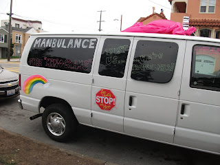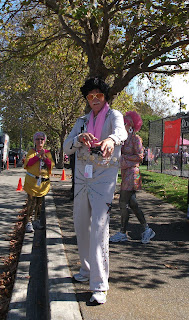 The Hookers for Hooters followed us around all weekend too. It was too humorous watching them in the “Quiet Zones’ such as the streets of Sausalito on Saturday morning. They still jumped up and down and shook their pompoms and all but they did it without making a sound. Quite entertaining! Because I was wearing my “I’m a Street Walker” tshirt, I had to take advantage of the photo op!