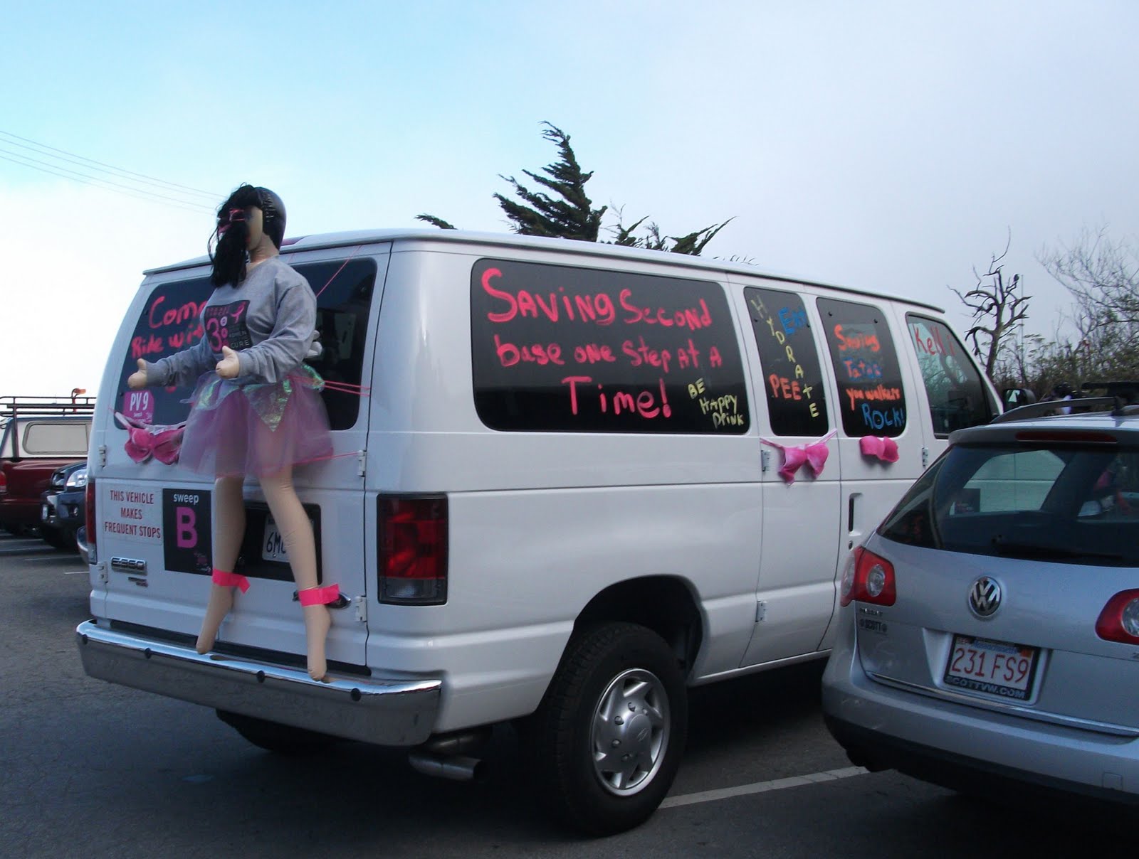 Then there are the sweep vans. They drive continuous laps on the route and make themselves available in the event that a walker is too tired or in too much pain to make it to the next stop on their own power. These are not ordinary vans; they are decorated with themes as well. They entertain and cheer and make us laugh but most of all, they help to keep the walkers safe.