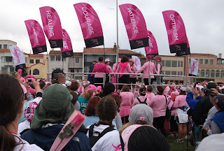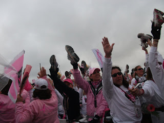 Next we honored the survivors. Each walker removed one shoe and held it high in salute to those who fought the battle of breast cancer.