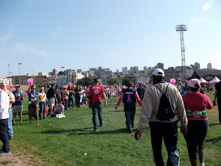 At the end of the line, I got my souvenir t-shirt and my pink rose. Then I found a place in the shade and sat. I needed to stay off my feet and let my knee rest. I’d taken all of the Advil I dared to take and was stretching like crazy but the pain behind my knee was still pretty intense. I wanted to give it as much rest as I could before we marched into the Closing Ceremony.