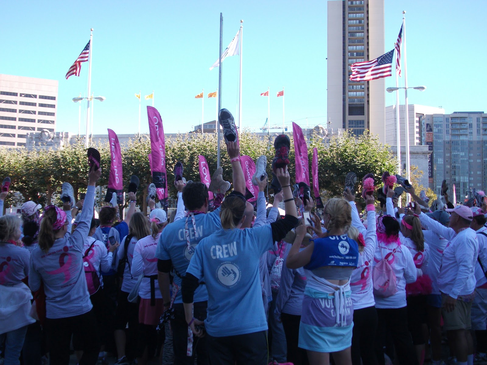 the stage carrying the flags with the names of the loved ones for whom they