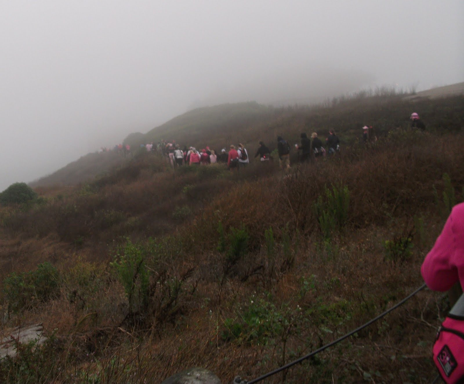Remember the movie the Sound of Music? Remember in the final scenes when the von Trapp family escaped through the mountains? Our walk through along the path leading to the Golden Gate Bridge that morning was the same sort of scene, only in dense fog… and pink.