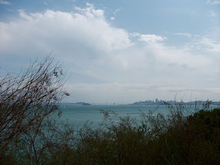 The ferry dropped us in Tiburon. First we walked west to Mill Valley then south to eventually cross the bridge. We had sun all day and perfectly blue skies. It was a beautiful gift for day 3!